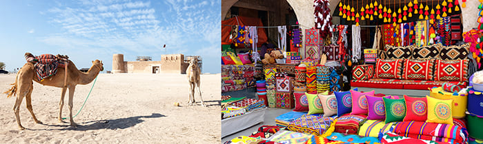 마지막으로 둘러볼 곳은 현지 문화를 직접 체험할 수 있는 코스입니다. 카타르 전통시장 ‘쑥 와키프(Souq Waqif)’는 로컬 문화를 제대로 체험할 수 있는 장소인데요. 해가 진 뒤 황금빛 조명을 받아 금빛으로 물든 ‘쑥’을 거닐다 보면, 아랍식 전통 건물과 전통 의상을 입은 현지인을 만날 수 있습니다. 이국적인 분위기를 물씬 풍기는 아랍 공예품을 구경하고 다양한 아랍 음식을 맛보다 보면 중동에 온 기분을 만끽할 수 있습니다.