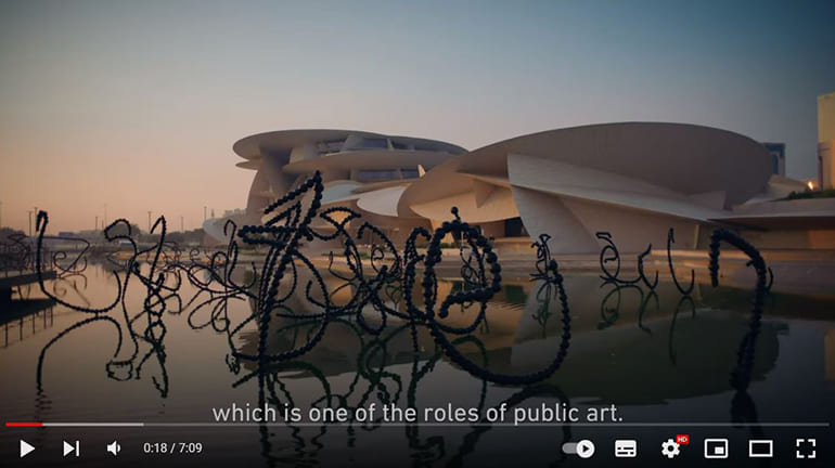현재 카타르 해변, 사막, 도심 속 빌딩 숲 곳곳에서는 다양한 공공조형물을 만나볼 수 있는데요.대표작으로는 카타르 북서쪽 알 주바라(Al Zubara) 해변에 우뚝 선 올라푸르 엘리아손(Olafur Eliasson)의 <하루의 바다를 여행하는 그림자>, 도하 코시니에 전시된 팝아트의 거장 제프 쿤스(Jeff Koons)의 공공조형물 <듀공> 등이 있습니다.