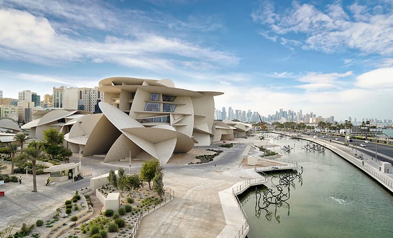 거리에서 만나는 예술 작품도 무척 반갑지만, 개인적으로 카타르의 문화예술을 제대로 느끼려면 금세기 최고의 걸작이라 불리는 ‘카타르 국립박물관(National Museum of Qatar)’을 방문해야 한다고 생각합니다. 현대건설이 시공한 카타르 국립박물관은 세계적 거장인 프랑스 건축가 장 누벨(Jean Nouvel)이 ‘사막의 장미(장미 모양을 띤 사막의 모래 덩어리)’를 모티브로 설계한 것으로 유명한데요. 휴일이 아니더라도 늘 관광객들로 북적이는 이곳은 건물 외관만으로 한 편의 예술 작품을 보는 듯 합니다. 이곳은 카타르 국민들의 관심과 애정을 반영하듯 2020년 신규 발행한 200리얄 화폐에 삽화되기도 했습니다.