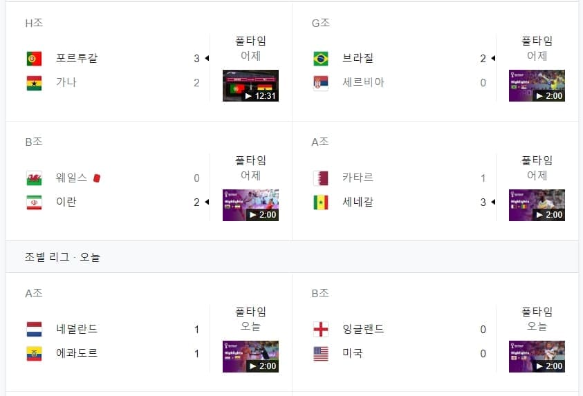 [2022 Qatar World cup] 카타르 월드컵 경기 결과와 오늘의 경기
