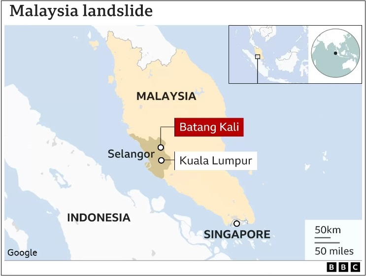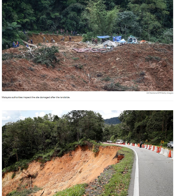 말레이시아 소방구조국은 30m(100ft) 높이의 경사면이 캠프장에 충격을 줘 "끔찍한 비극"이라고 말했다. 정부 당국은 산사태가 약 45만 m2의 토사를 포함하고 있다고 언급했다.