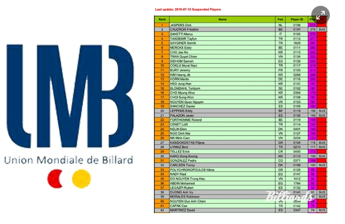 이들은 모두 지난 2019년 6월 열린 PBA/LPBA 투어 개막전 '파나소닉 오픈'에 출전한 선수들로, 1부 투어에 출전한 남녀 180명 중 UMB 랭킹에 올라 있는 선수들이 모두 자격정지를 받았다.