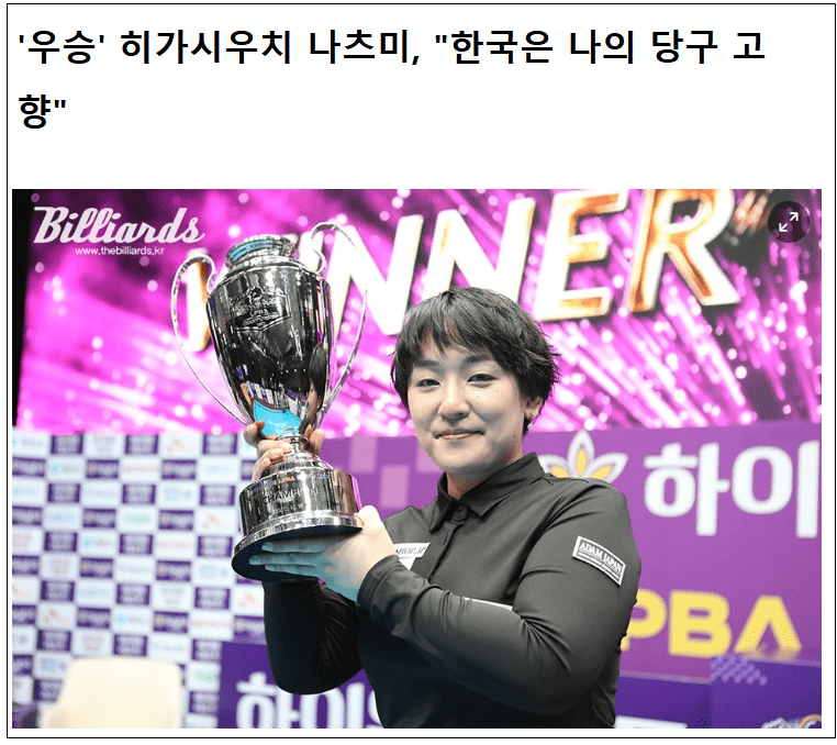 무엇보다 히가시우치는 우승 직후 진행된 우승자 인터뷰를 능숙한 한국말로 해내 눈길을 끌었다. 대학교에서 한국어를 공부하고 교환학생으로 1년간 한국에서 지내며 당구와 처음 인연을 맺은 히가시우치의 이야기를 인터뷰를 통해 들어보았다.