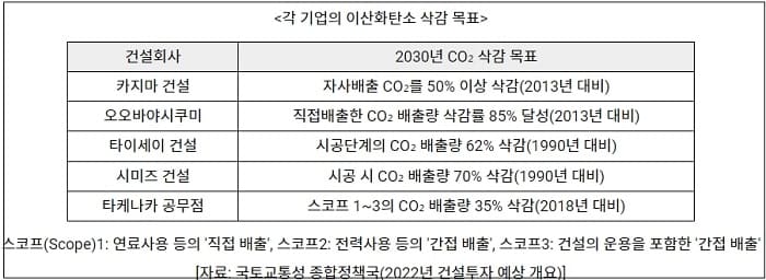일본 건설업계의 탄소배출 절감 동향...한국은?