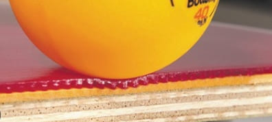 공이 들어오는 느낌, 스핀을 부여하는 정도를 결정합니다. 고무가 단단할수록 공이 스펀지에 쉽게 들어가지 않기 때문에 빠른 반발을 만들어내기 쉽지 않습니다. 하지만 파워, 훌륭한 발놀림, 기술이 충분하다면 가장 안정적이고 최고 속도, 스핀을 낼 수 있는 있기 때문에 프로 선수들이 '초경질'의 스펀지를 사용하는 이유입니다