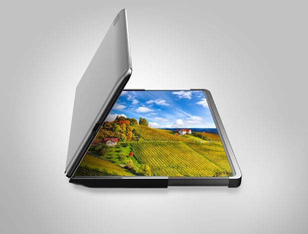 이 제품은 화면 왼쪽에는 폴더블 기술이, 오른쪽에는 슬라이더블 기술이 적용됐으며 왼쪽을 펼치면 10.5형 4.3 비율의 화면을, 오른쪽 화면까지 당기면 16:10 화면비, 12.4형 대화면 디스플레이로 영화나 유튜브를 즐길 수 있다.