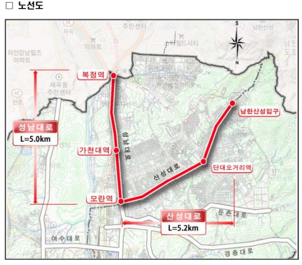 * ‘25년 개통 : 산성대로(모란역~남한산성입구), ‘26년 개통 : 성남대로(모란역~복정역)