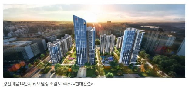 공사금액은 3천423억 원이다. 현대건설은 현재 지하 1층, 최고 25층 9개동 792가구로 구성된 강선마을 14단지를 수평ㆍ별동 리모델링을 통해 지하 3층∼지상 초고 29층 9개동 902가구로 탈바꿈시킨다.
