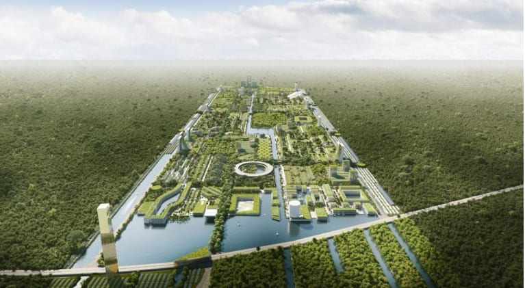 이탈리아 건축가 스테파노 보에리는 칸쿤 근처 557 헥타르에 걸쳐 750만 개의 탄소를 흡수하는 식물과 나무를 포함할 숲이 우거진 스마트 시티를 위한 계획을 세우고 있다.