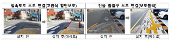 이에 따라 생활도로를 중심으로 최소한의 보도폭을 확보하도록 하고 보도 단절구간에서는 고원식 횡단보도 또는 보도블럭을 활용해 보도를 연결하는 등의 관리가 필요한 것으로 확인됐다고 국토부는 설명했다.