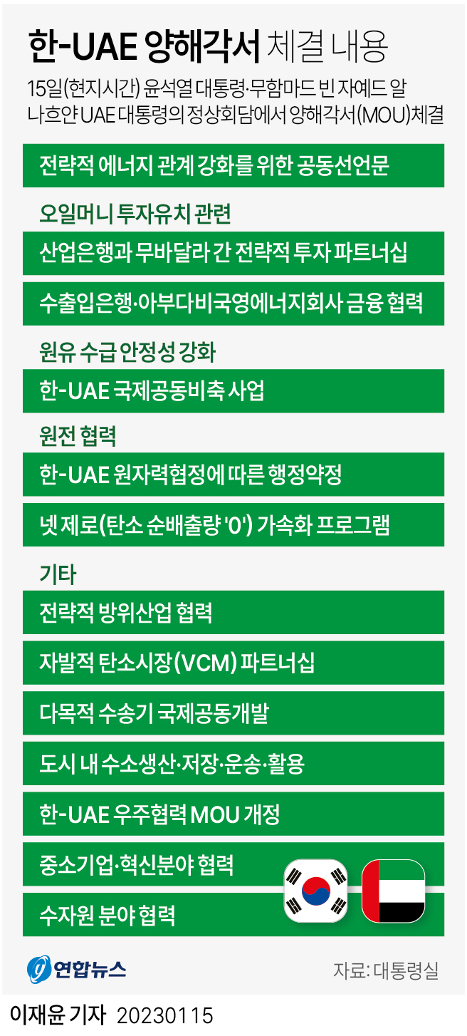 투자 결정은 윤석열 대통령과 무함마드 빈 자예드 알 나흐얀 UAE 대통령 정상회담을 계기로 성사됐다.