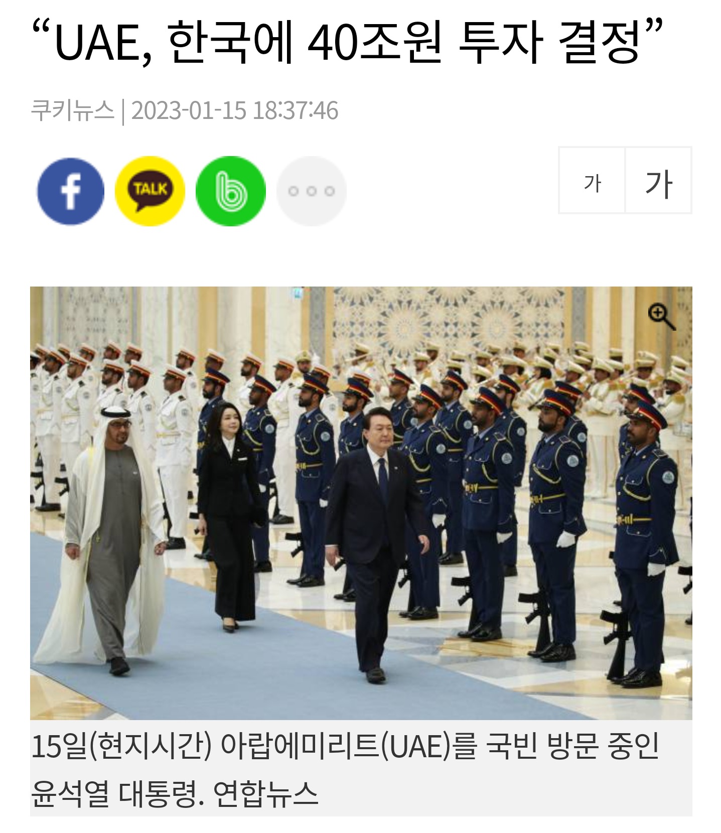 아랍에미리트(UAE)가 한국에 약 40조원을 투자한다.