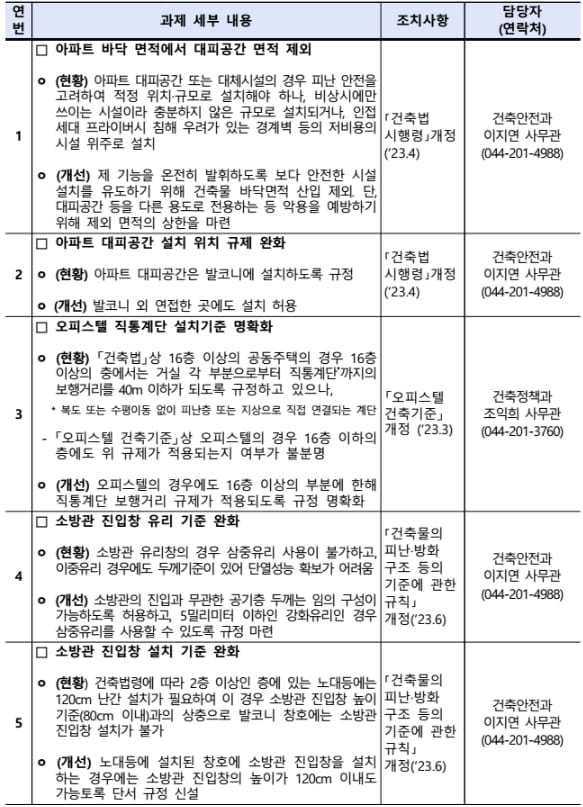 또한, 소방관 진입창 및 발코니 난간의 최소높이가 서로 달라 발코니에 소방관 진입창 설치가 어려웠는데 이를 난간의 높이기준으로 일치시킨다.