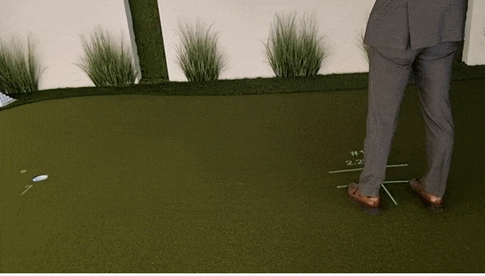 퍼팅장에는 풀스윙이라는 기업에서 만든 ‘버츄얼 그린’이 설치돼 있었다. 강 점장이 태블릿을 두드려 조작하자, 밟고 서 있는 그린이 자동으로 움직이면서 높낮이를 바꾸고 있었다.