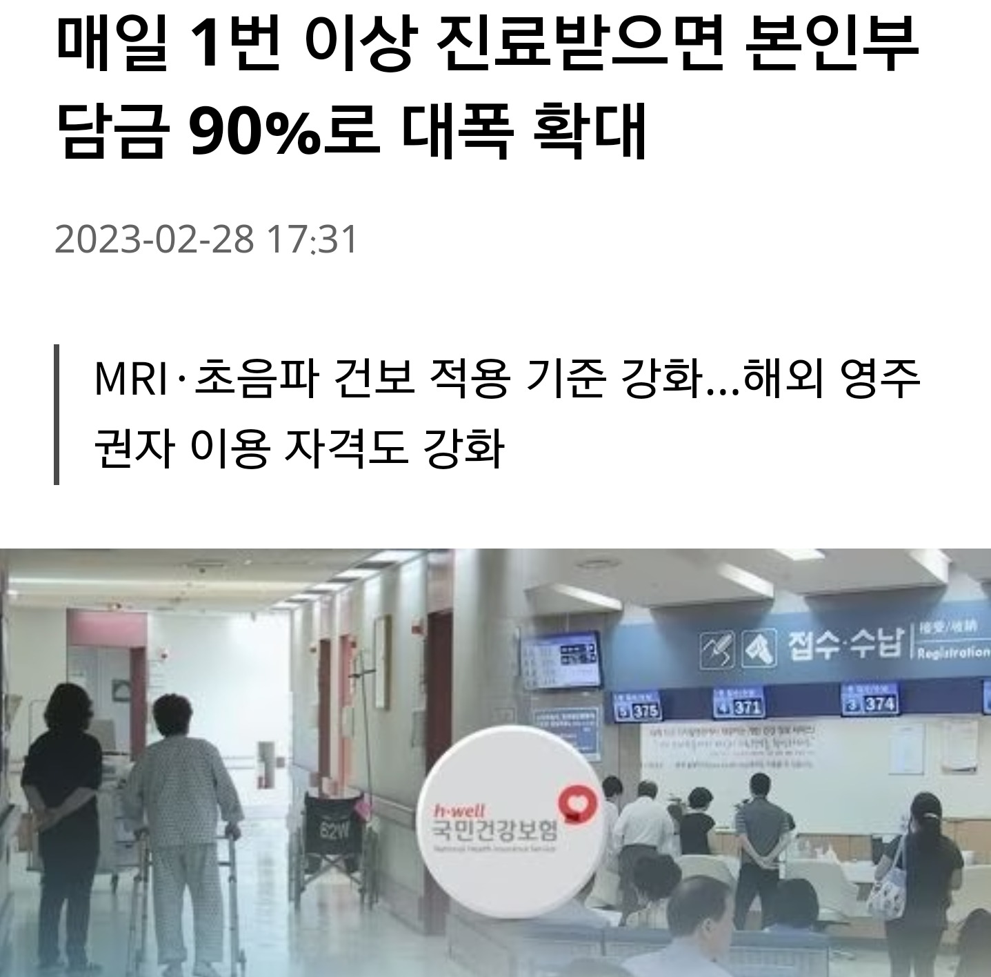 앞으로 연간 365회 이상, 하루 1회 이상 꼴로 의료기관을 찾아 외래 진료를 받은 사람에 대해서는 건강보험 본인부담률이 90%로 상향된다.