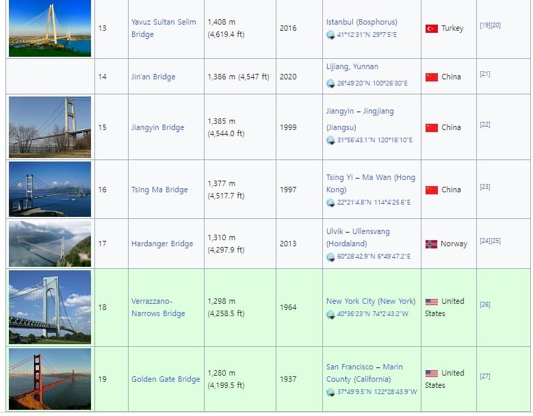 세계에서 주경간이 가장 긴 교량 순위 VIDEO: The longest suspension bridge spans