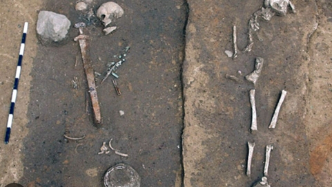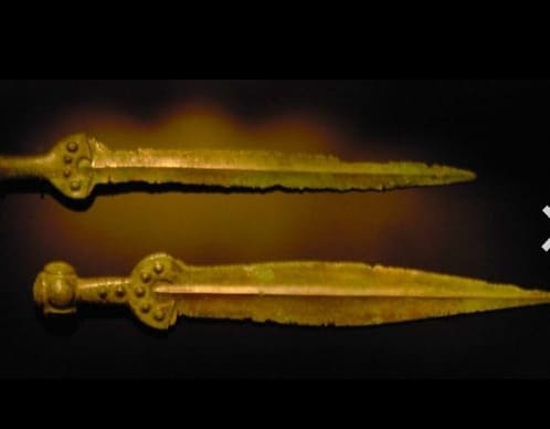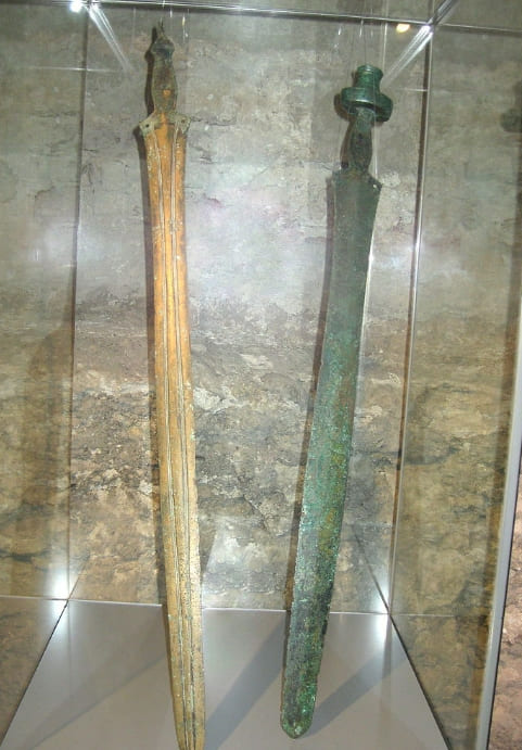 고대의 칼은 종종 매장지에서 발견된다. 칼은 종종 시체의 오른쪽에 놓였다. 여러 번 칼이 시체 위에 놓여 있었다. 많은 후기 철기 시대 무덤에서, 칼과 칼집은 180도로 구부러졌다. 그것은 검을 죽이는 것으로 알려져 있다. 따라서 그들은 검을 가장 강력하고 강력한 물체로 생각했을지도 모른다.