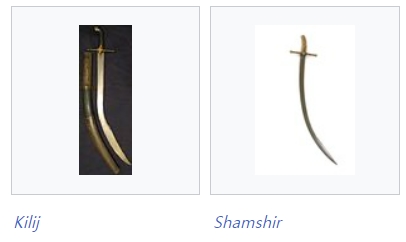굽은 검, 또는 시미타(그리고 아라비아 사이프, 페르시아 샴시르, 투르크 킬리와 같은 다른 지역 변형)의 가장 초기 증거는 페르시아의 쿠라산 지역의 군인들 사이에서 사용되었던 9세기의 것이다