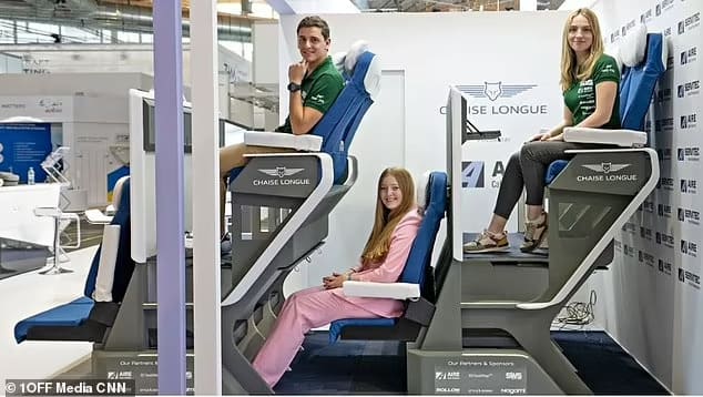 The future of air travel? Startup reveals a DOUBLE-DECKER plane seat – and claims it gives passengers more legroom than standard chairs