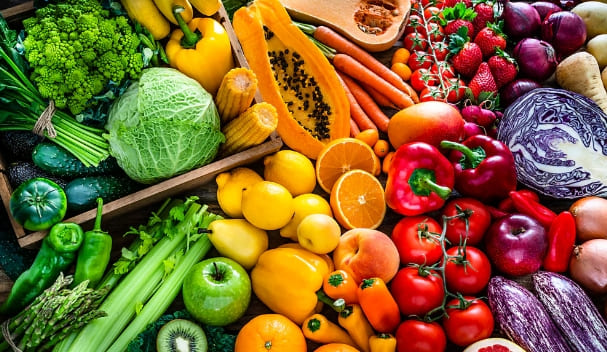 매일 최소 5인분의 다양한 과일과 채소를 먹는 것이 좋다. 그것들은 신선할 수도 있고, 냉동될 수도 있고, 통조림으로 될 수도 있고, 건조되거나 주스로 될 수도 있다.