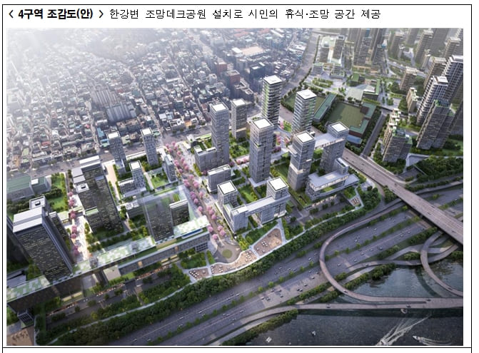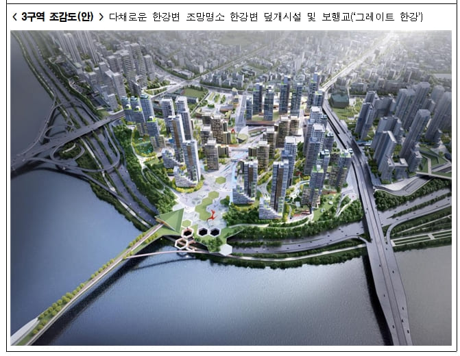 이와 함께 한강변 30m 구간은 수변 특화 구간으로 설정해 주민공유시설, 열린 공간, 조망 명소 등 특화 디자인을 통해 도시와 자연이 경계 없이 융합하는 한강변을 조성할 계획이다.