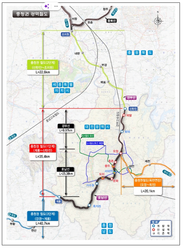 * 사업 구간 : 계룡~신탄진 35.4km(12개 정거장), 사업 기간 : 2016~2026년, 총사업비 : 2,598억 원