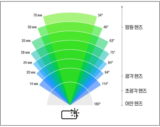 참고로 원래 광각은 120도 이상의 화각을 뜻했는데요. 초광각이란 용어가 나타나며 의미가 변했습니다. 보통 스마트폰에 한정해 120도 이하를 광각으로 여깁니다.