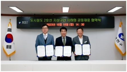 이에 서울시 지하철 주요 지상구간이 지나는 송파구-광진구-성동구는 지난 16일 14시 30분 광진구청에 모여 ‘지하철2호선 지상구간 지하화 공동 대응을 위한 업무협약’을 체결했다. 협약식에는 서강석 송파구청장, 김경호 광진구청장, 정원오 성동구청장이 참석했다.