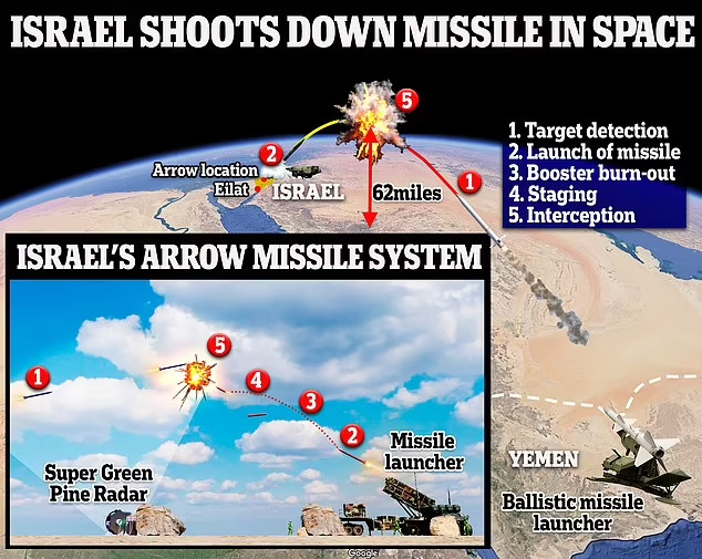 Space becomes new theater of war: Israel shoots down a ballistic missile that was traveling 62 miles ABOVE Earth