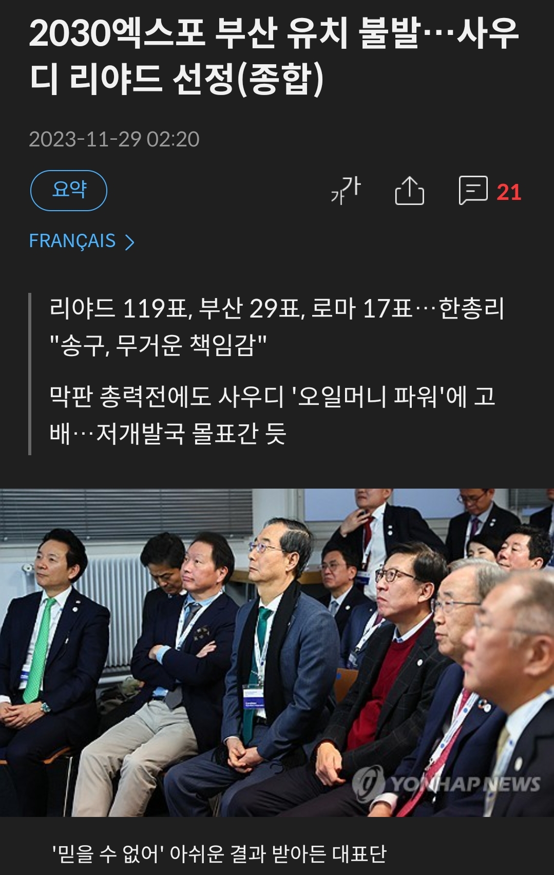 2030엑스포 부산 유치 불발…사우디 리야드 선정(종합) | 연합뉴스