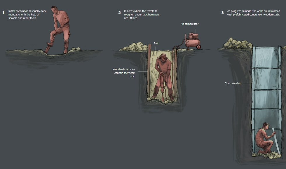 그는 로이터통신에 "그들이 손으로 땅을 파거나 간단한 전동공구를 사용하는 비디오를 많이 봤다"며 "그 토양은 신속하고 숙련되지 않은 땅을 파는데 도움이 된다"고 말했다. 이와는 대조적으로 레바논 시아파 집단인 헤즈볼라는 북부 이스라엘로 국경을 넘는 터널을 짓기 위해 남부 레바논에 있는 단단한 바위를 파헤쳐야 했다고 그는 말했다.