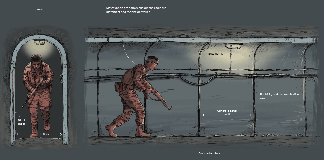 그래픽으로 보는 '가자 터널'의 모든 것: 토목공학적 분석 Inside the tunnels of Gaza