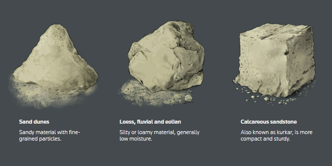 365 평방 킬로미터에 있는 토양의 세 가지 주요 유형은 다음과 같다
