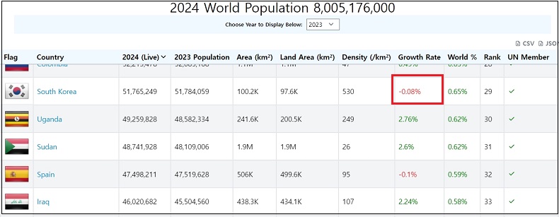 2위 중국의 인구증가률도 한국만큼이나 심각하다