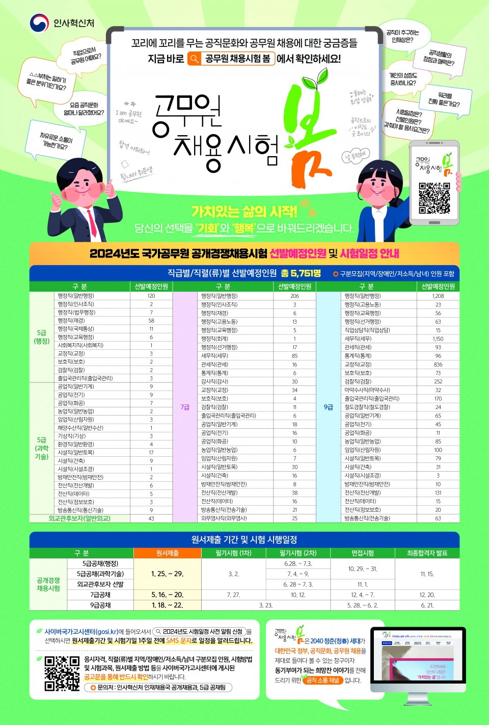인사처 ‘2024년도 국가공무원 공채시험 등 계획’ 공고