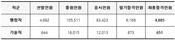 국가직 9급 최종합격률: 행정직 4.6% / 기술직 4.1%