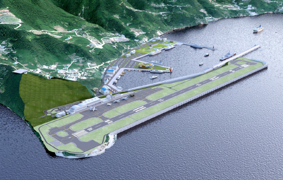 울릉도 사동리 울릉(사동) 항 일대에 사업비 7천92억 원을 투입, 활주로 길이 1천200m 폭 36m로 건설되는 울릉공항건설이 순조롭게 진행되고 있다.