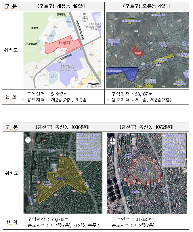 [신통기획] 개봉동 49일대, 오류동 4일대, 독산동 1036일대, 독산동 1072일대,