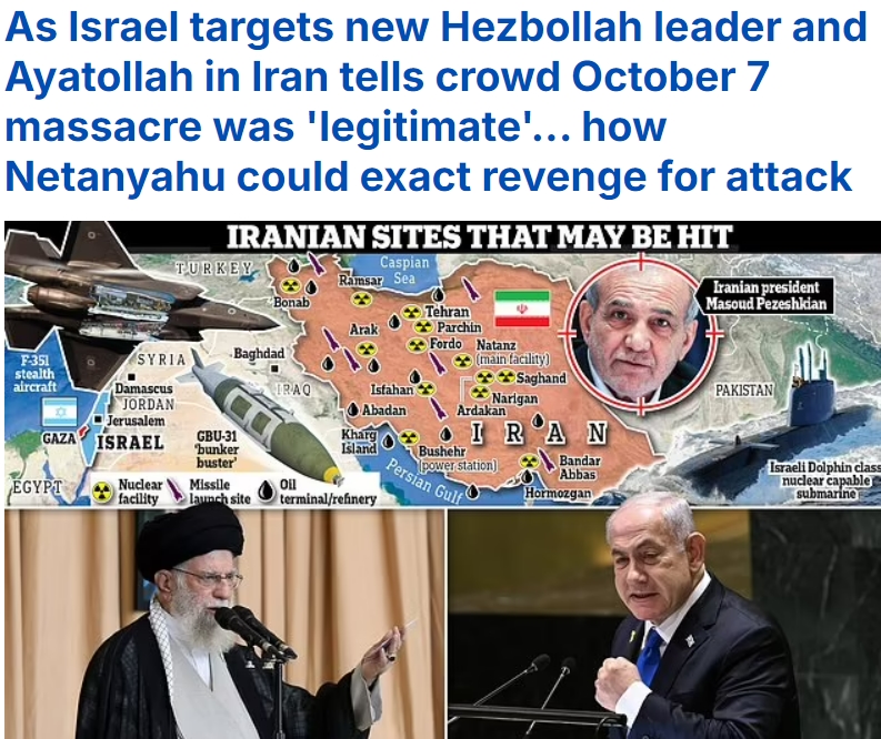 이스라엘이 헤즈볼라의 신임 지도자를 표적으로 삼고 이란의 아야톨라가 군중에게 10월 7일 학살이 '합법적'이었다고 말하자... 네타냐후가 어떻게 공격에 대한 복수를 할 수 있을까