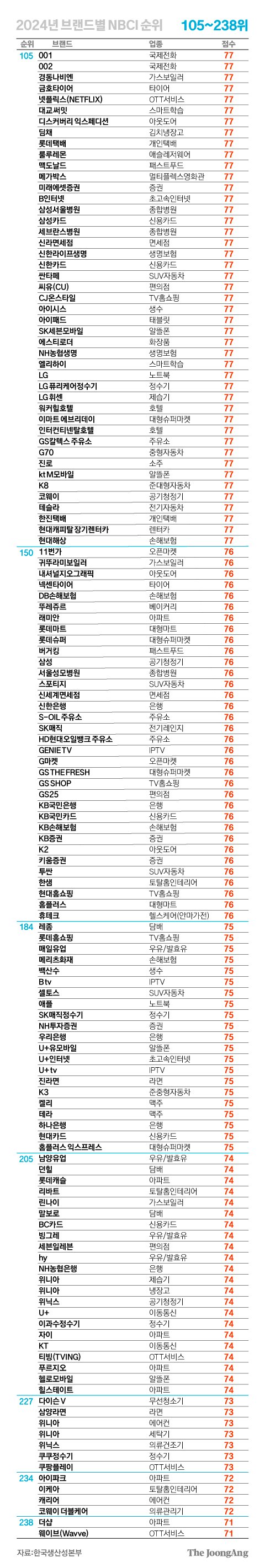 2024 국내 주요 브랜드 경쟁력지수(NBCI)