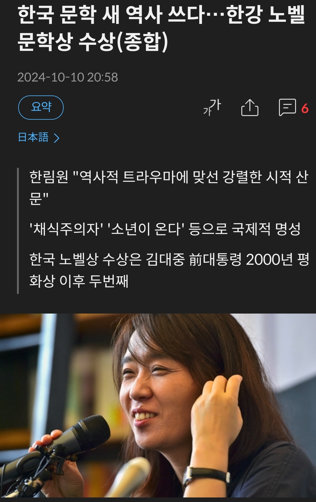 [2024 노벨상] 문학상, 한국의 한강 한국 적가 최초 수상 South Korea’s Han Kang wins 2024 Nobel Prize