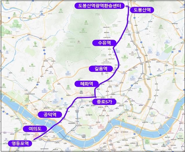 도봉산역 광역환승센터∼쌍문역∼미아사거리∼종로∼공덕역∼여의도환승센터∼영등포역을 운행하며, 87개 일반 시내버스 정류소에 정차한다.