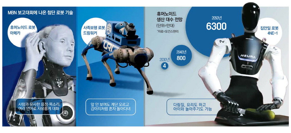 한편 장대환 매경미디어그룹 회장은 "일론 머스크의 예언대로 휴머노이드가 인간보다 많아지고, 인간의 일을 대신할 날이 머지않았다"면서 "MBN 보고대회가 대한민국이 휴머노이드 강국으로 도약하는 초석이 되기를 바란다"고 강조했다. 장 회장은 이날 행사장에서 독일에서 로봇이 직접 MBN 로고를 프린팅하고 다림질까지 한 티셔츠를 선물로 받았다. 택배 상자를 무대까지 배송한 것도 사족로봇이었다.