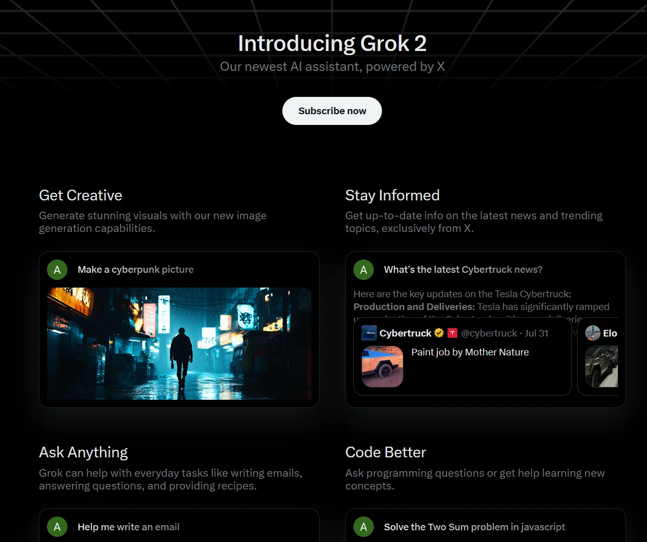 크리스 파크 X 개발자는 "완전히 새로운 이미지 생성 모델인 오로라를 출시했다"라며 "이제 X에서 그록 2와 오로라를 제공한다"라고 밝혔다. 또 "곧 그록 3가 출시될 것"이라고 예고했다.