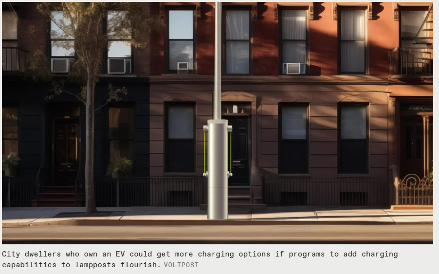 Voltpost는 도로변 충전을 두 가지 문제의 해결책으로 보는 회사 중 하나입니다. 이 회사는 직류 장치를 설치하는 비용의 일부만으로 기존 가로등을 레벨 2 충전기로 1~2시간 만에 개조할 수 있습니다. 이 충전기는 EV 에 7.6킬로와트를 보낼 수 있어 야간 주유나 도로변에서 더 오래 주유하기에 완벽합니다.