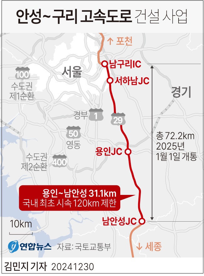 안성-구리 고속도로 새해 첫날 개통...국내 최초 제한속도 120km/h