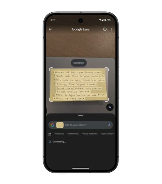 사진 속 텍스트를 요약하거나 복사하고 싶을 때도 구글 렌즈가 유용하다. 손글씨 메모나 메뉴판을 찍으면 내용을 자동으로 요약하거나, 텍스트를 클립보드에 복사할 수 있다. 특정 내용을 강조하고 싶을 경우, 예를 들어 식당 메뉴판에서 채식 옵션을 하이라이트하는 기능도 제공한다.