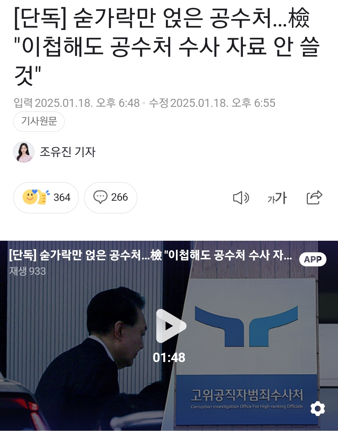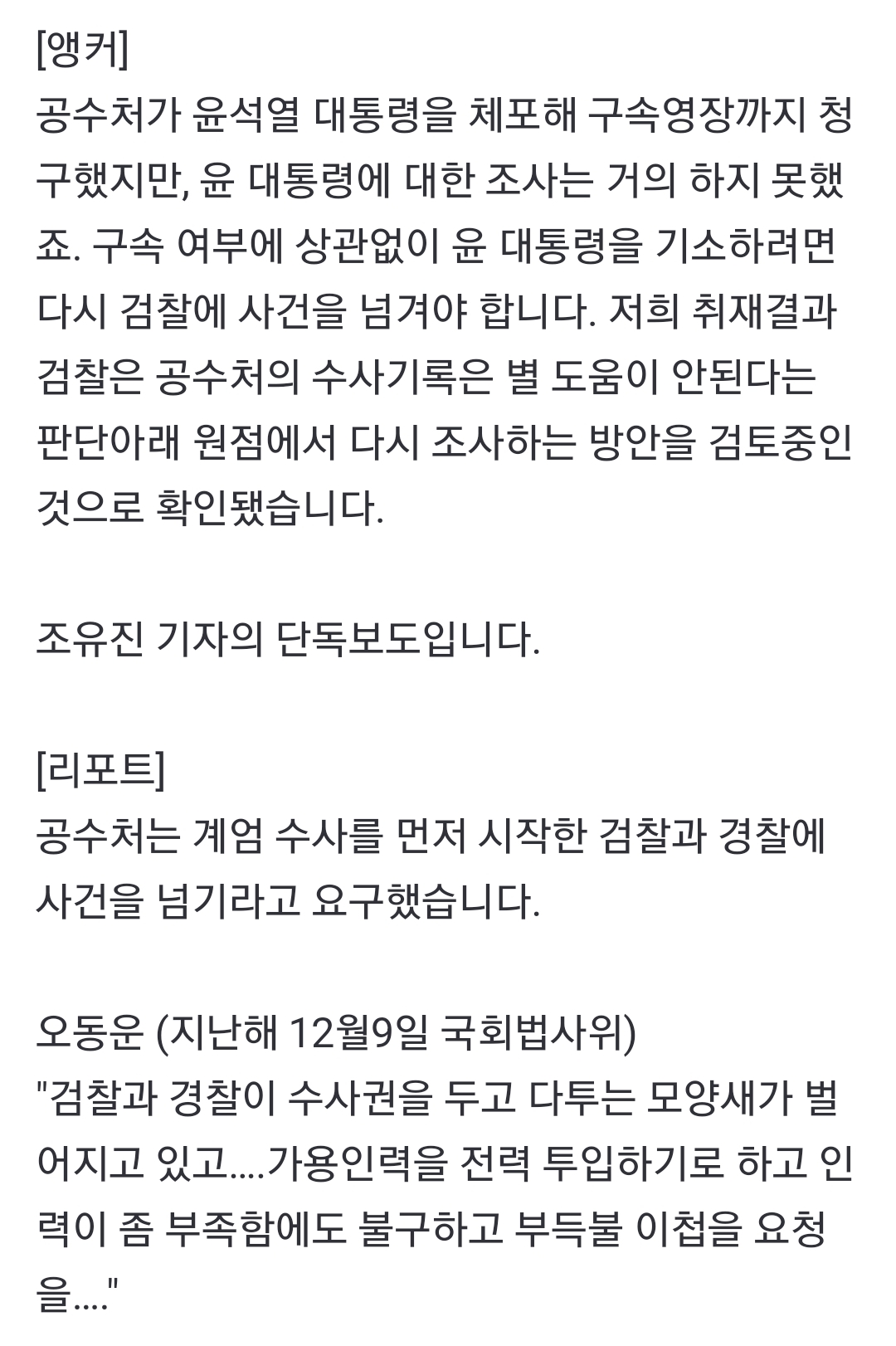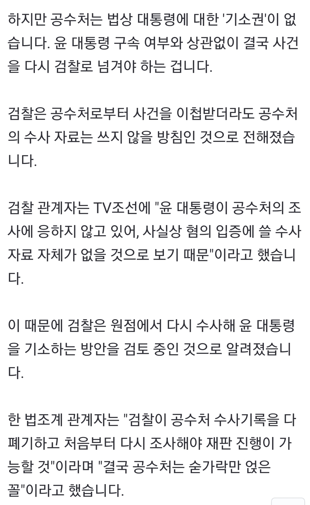 검찰, "공수처 수사자료 인정 안해...다시 원점부터 할 것"