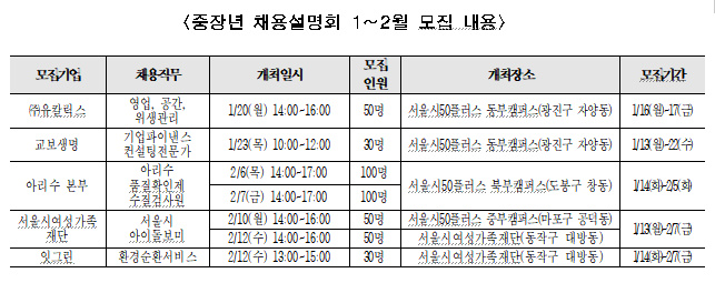 서울시50플러스재단, 경기 침체로 구직 어려움 겪는 중장년 위해 1월 20일부터 채용설명회 열어