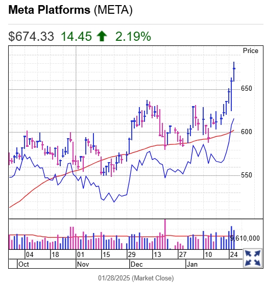 Meta Platforms ( META ) 의 주가는 화요일에 2.7% 상승하여 평탄한 기준인 638.40 매수 포인트를 넘어섰습니다. 최근 세션에서 주가는 50일선 근처에서 지지를 찾았습니다.
